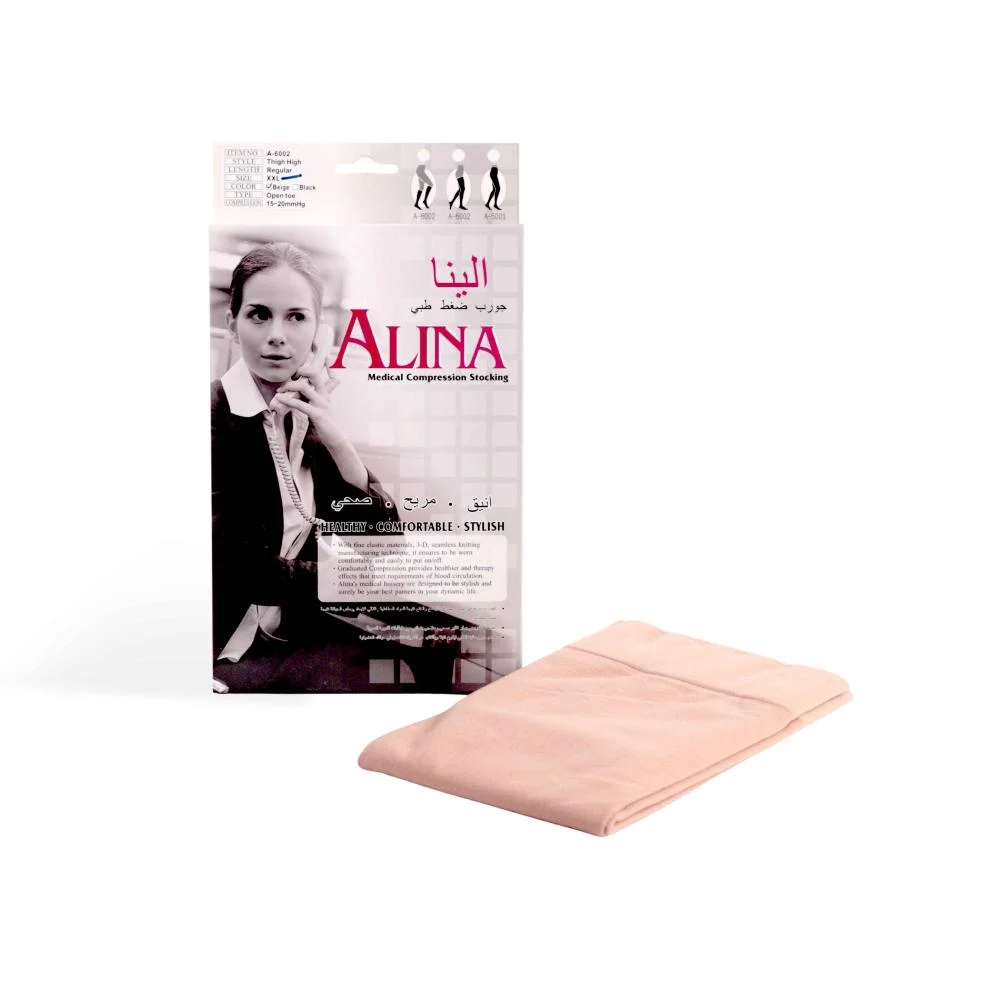 جوارب طبية ضاغطة من أَلِينا بطول الفخذ، لون بيج، مفتوحة الأصابع، مقاس متوسط بضغط 15 ّ20 ALINA MEDICAL COMPRESSION STOCKING A-6002 THIGH HIGH BEIGE OPEN TOE M